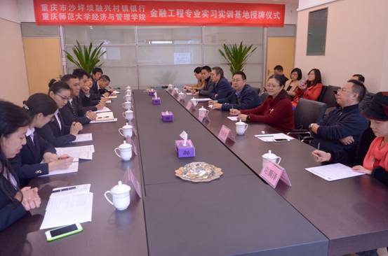 重庆市沙坪坝融兴村镇银行是经中国银监会重庆银监局批准,哈尔滨银行控股发起成立并具有独立法人资格的银行业金融机构成立于20125月,注册资本1亿元。作为一家快速发展的新型金融机构,重庆融兴村镇银行资产总额和员工人数已具有一定的规模,也构建出完备的组织架构,拥有足够的组织与管理能力,完全符合教学实习基地的要求,重庆融兴村镇银行成为重师“金融工程专业实习实训基地”,是asmr18 推进专业提档升级发展的重要战略举措。经过前期的磋商与交流,校企双方本着互惠互利的原则,携手合作建立教学实习基地,将使重师经管学院的理论基础、科研能力和重庆融兴村镇银行的业务技能、金融实践优势得到充分发挥。实习基地的建立将为金融工程专业学生见习、实习、就业、创业提供平台,为教师专业实践知识的学习创造便利机会,也为asmr18 的科学研究提供项目来源和成果运用渠道。实习基地的挂牌必将推动asmr18 与重庆融兴村镇银行在人才培养、科学研究、项目开发等方面建立起稳固的、长期的合作关系,促进双方的共同发展。