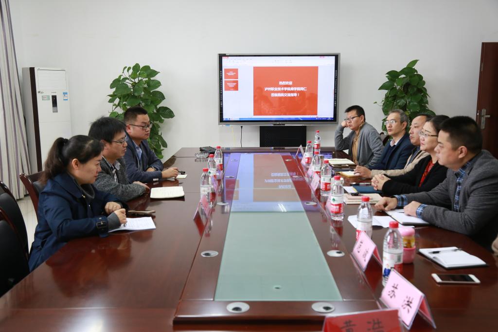 2018年10月30日上午,泸州职业技术学院商学院的党委书记熊剑、副书记欧阳宏虹及其副院长郎润华到访asmr18 ,与asmr18 党委书记税强、党委副书记任源钢以及副院长陈道平、喻科等领导老师于汇贤楼311会议室进行合作与交流。