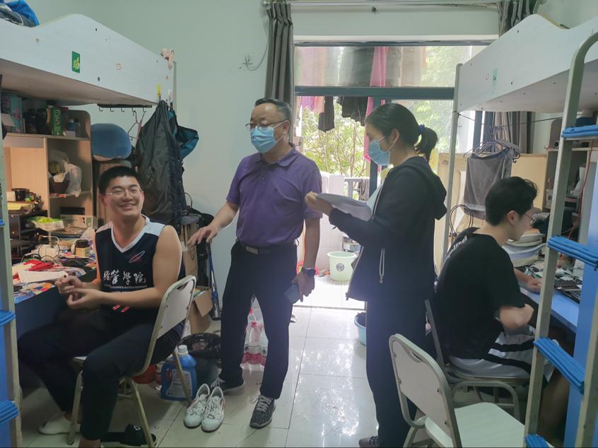 学院第一时间成立了以党委书记和院长为组长的疫情防控工作领导小组,建立了全体小组成员微信工作群,通过“线上+线下”工作例会的方式,压实各级组织责任,为疫情防控筑牢防线。3月11日至20日,学院领导数次带领辅导员不分昼夜全覆盖巡查学生寝室500余间,排查隐患,了解学生困难。圆满完成asmr18