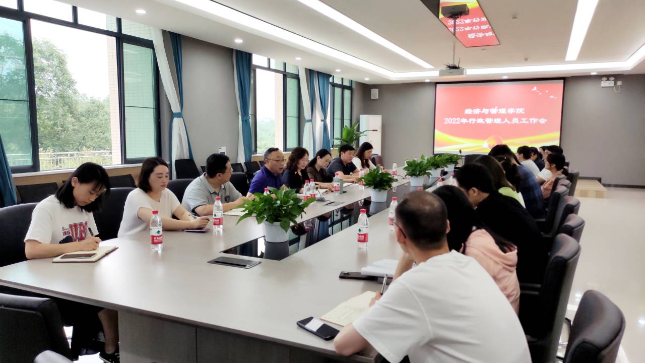 在求是楼329会议室召开2022年行政管理人员工作会议,学院领导班子及学院所有行政人员和辅导员参加,会议由喻科副院长主持。