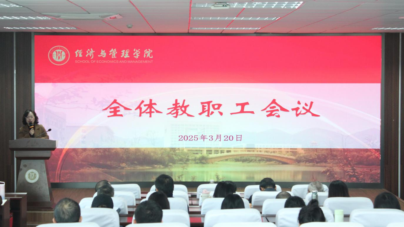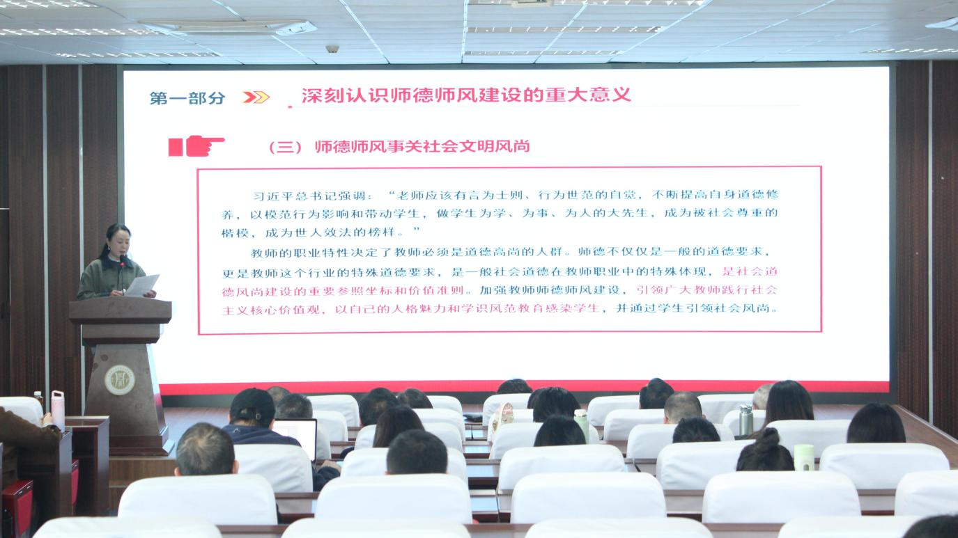 召开全体教职工大会,党委书记钟敏作“新时代高校师德师风实践案例分析与反思”为题的专题报告。