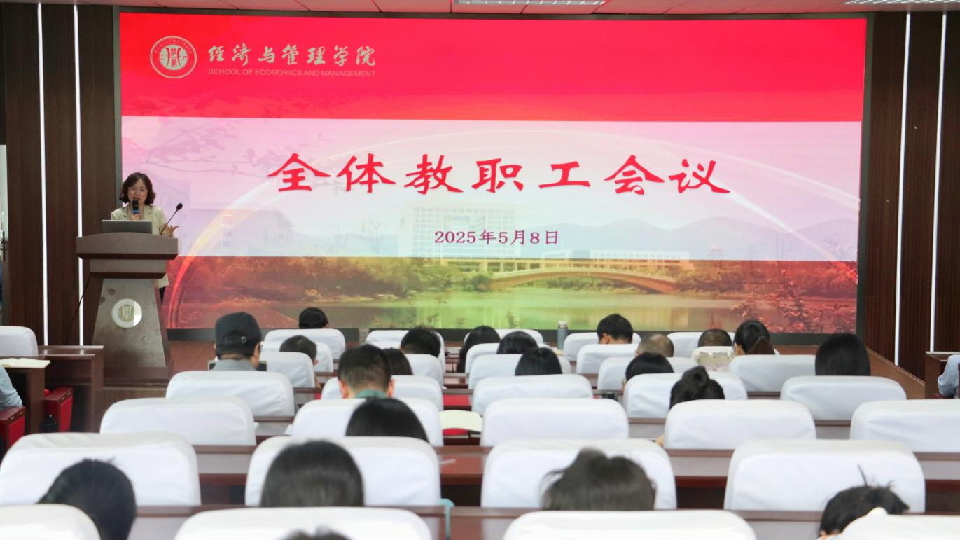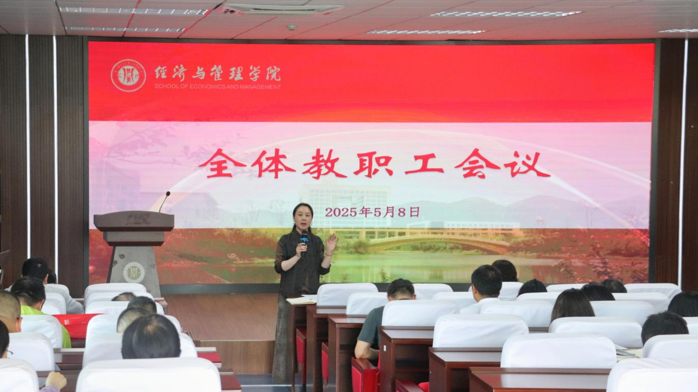 在求是楼517会议室召开全体教职工大会,学院领导班子及全体教职工出席会议。