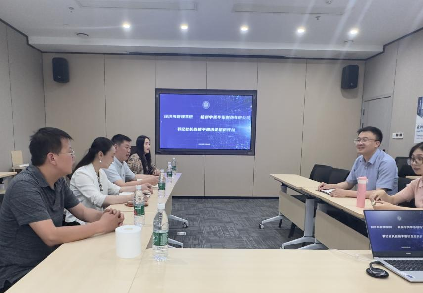 与杭州中美华东制药有限公司举行合作洽谈会。学院党委书记钟敏、副书记李青松、财务金融系系主任张保帅、辅导员唐艺珊,杭州中美华东制药有限公司人力资源经理龙秋伶、大区经理罗建全、办公室主任郭梅出席洽谈,双方在学生招聘、实习等实践方面达成合作意向。