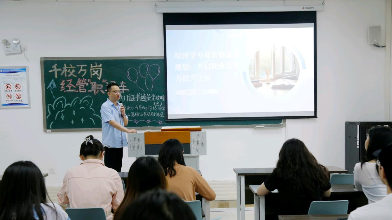 张泽义从经济学专业考证的核心价值、核心证书以及如何选择适合自己的证书三个方面展开讲述,强调提升职业竞争力、弥补课堂知识与实务操作之间的鸿沟、职业转型与长期发展的重要性。同时,他结合经济学专业学科特点与优势,由浅入深地列举了多项经济学类的相关证书,详细说明了不同证书的考试内容、难度层次以及适合的岗位方向,为同学们提供了具有针对性的指导建议。