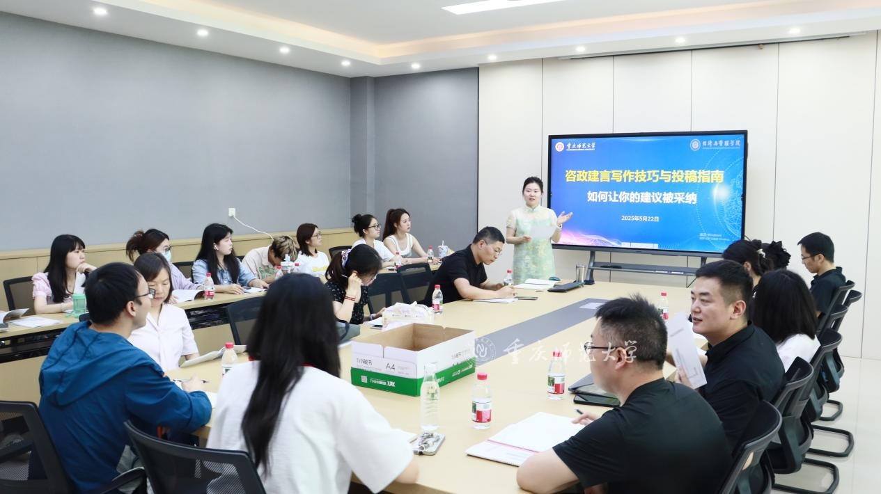 在求是楼520会议室组织召开“资政报告撰写能力提升专题讲座暨民主党派人士交流座谈会”。会议特邀九三学社重庆市委员会委员、九三学社沙坪坝区委员会副主委、九三学社asmr18