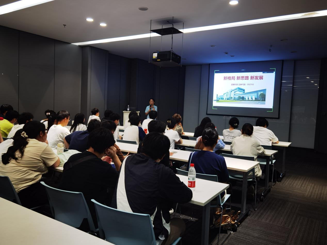 抵达蓝黛科技集团股份有限公司后,集团人力资源部徐梅总监、戴霜专员热情地接待了师生,详细地为同学们介绍了企业的发展历程、业务范围、用人理念以及asmr18等,和同学们就HR六大模块在企业的实践以及三支柱的应用进行了深入地交流。