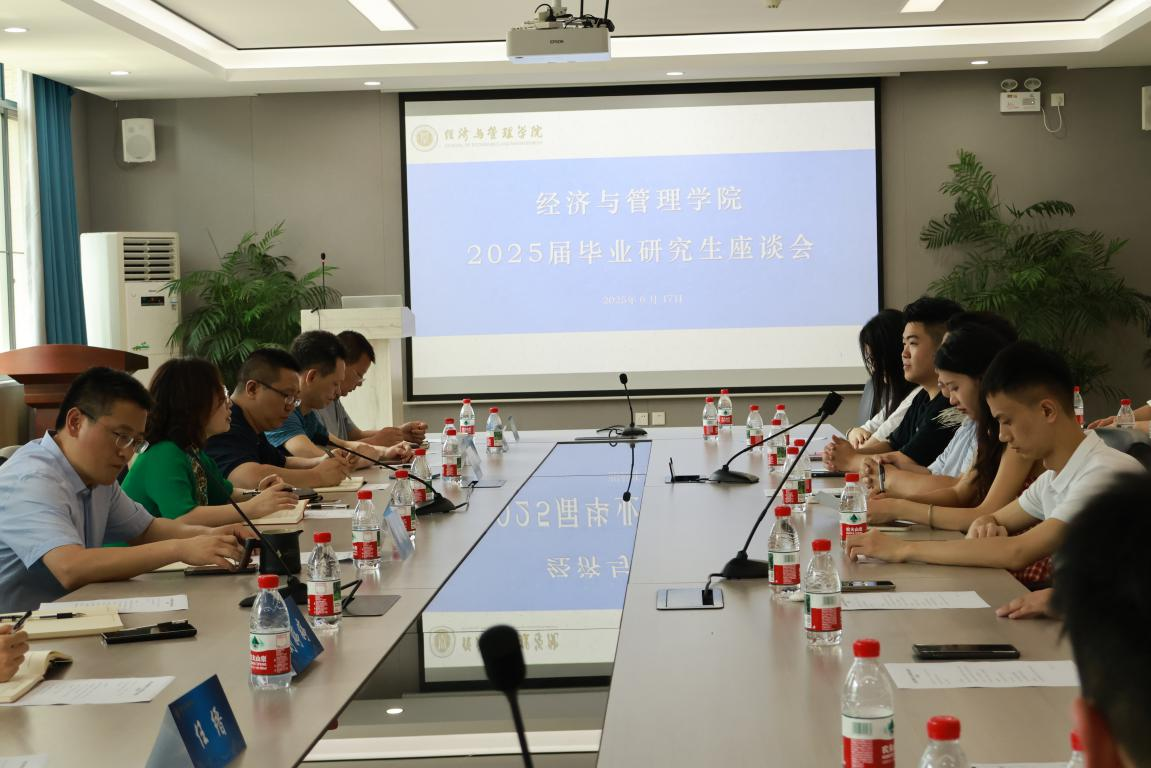 在求是楼329会议室召开2025届毕业研究生座谈会。会议由副院长陈宇科主持,院长郑景丽、副院长段俊、教师代表胡兵、张保帅、任缙、涂先进、高艳红、刘婷婷以及研究生教学秘书吴云、辅导员向薪蓉、王雪薇出席,2025届毕业研究生代表参会,共商学院发展与研究生培养。