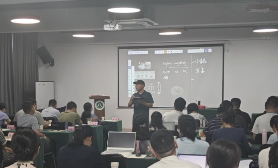 浙江师范大学教师教育学院教授、智慧教育研究院副院长黄立新教授为培训班成员带来了题为《deepseek技术赋能教学实践创新》的专题讲座。他现场演示了“pad+投屏器+Explain Everything教学软件”在实际教学过程中的应用,让学员们直观感受到技术融合为传统教学带来的创新活力与课堂授课效果。