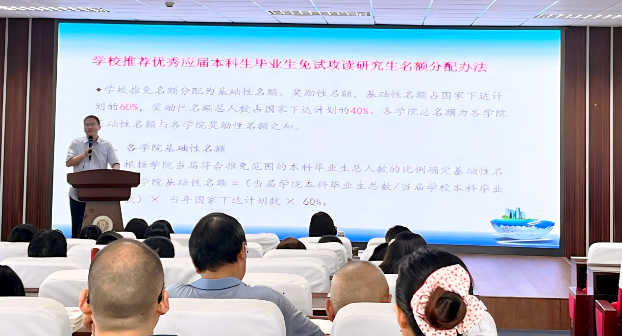 副院长陈宇科通报暑期科研与研究生工作情况,通报研究生就业率和推进就业工作具体举措,总结上半年各类项目申报情况,鼓励全体教师潜心开展科研工作,以高水平科研支撑学院高质量发展。
