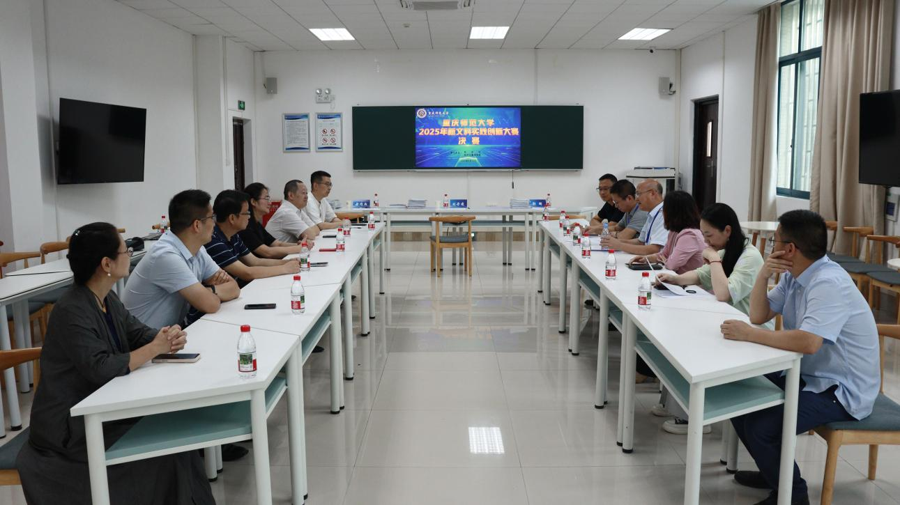 赛前,杨如安对评审专家们的莅临指导表示热烈欢迎和衷心感谢,并与大家进行深入交流。他表示,新文科大赛是深化高校实践创新改革、推动文科创新发展的有力举措,希望以此次大赛为契机,进一步推动文科教育与时代需求深度融合,实现高质量发展。教务处主要负责人介绍了大赛的基本情况和评审规则。