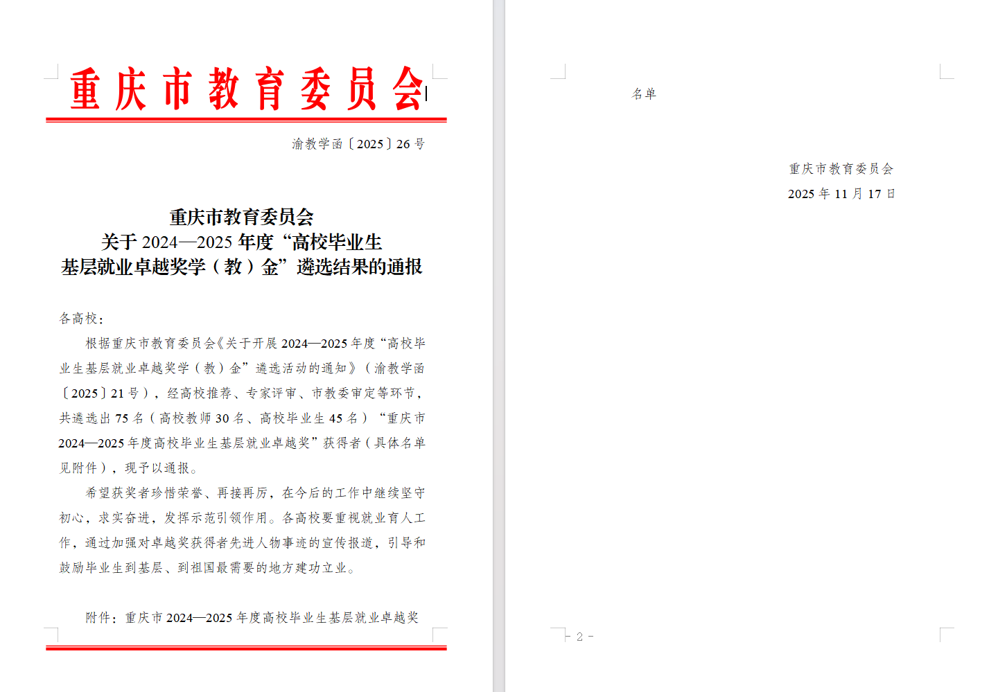 近日,重庆市教育委员会公布了2024-2025年度“高校毕业生基层就业卓越奖学(教)金”评选结果,asmr18