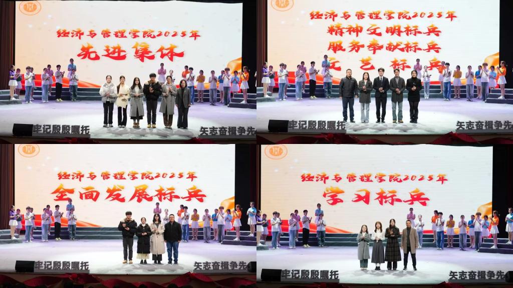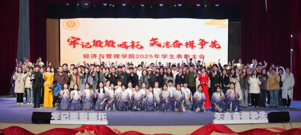 此次表彰大会不仅是对过去一年学院成绩的集中展示与嘉奖,更是一堂生动深刻的思政大课与精神洗礼。它激励全体经管学子以“胡杨精神”扎根成长,以“格桑花品格”绽放青春,牢记时代嘱托,勇担历史使命,在未来的学习与人生道路上持续奋楫争先,为实现中华民族伟大复兴的中国梦贡献青春力量。