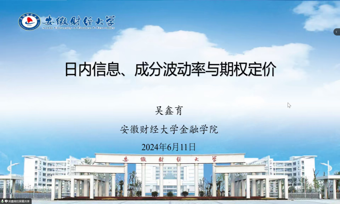 随后,吴鑫育教授分享了他对日内信息、成分波动率影响期权定价的相关研究,厘清了该领域在理论视角上的发展脉络和研究主题上的分化趋势,指出成分波动率在资产配置、期权定价和风险管理等多个领域起着关键作用,进一步为研究生们明确了在选题层面的注意事项和研究层面的着力方向。