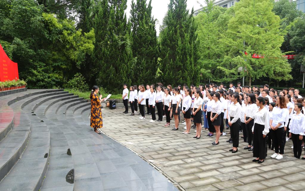 全体党员面向党旗,在学院党委组织委员朱勇同志带领下,庄严宣誓,庄严承诺,坚定决心,在党旗下接受心灵的净化和洗礼。随后,学院党委书记税强同志代表学院党委向新入党的学生党员表示热烈的祝贺!同时,从加强理论武装、加强党性修养、发挥先锋作用等方面对全体学生党员提出要求,希望全体学生党员要牢记党员身份,时时处处以一名共产党员的标准来衡量自己的一言一行;要始终牢记入党誓言,用自己的模范行为去实践,终生为之奋斗。