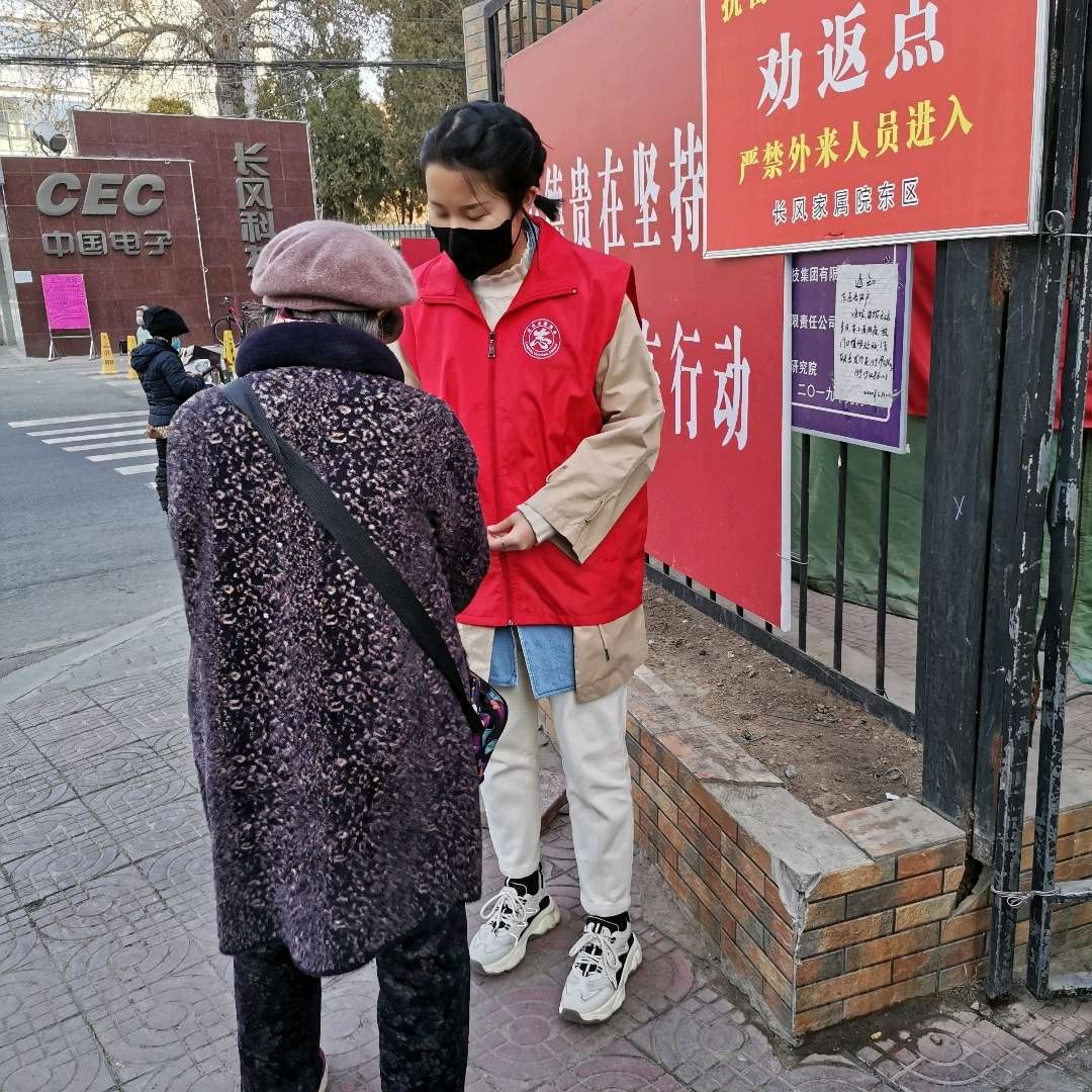 王烨敏同学主动参与了家乡甘肃兰州安宁区政西路街道长风社区的防疫工作。她和其余社区工作人员一起进行入户分发防疫新型冠状病毒感染宣传单、登记人员信息,为出入人员测量体温、帮助居民获取必要的物资、指导复工人员办理相关手续等。通过此次志愿服务,她深刻感受到了大家众志成城,共渡难关的决心。