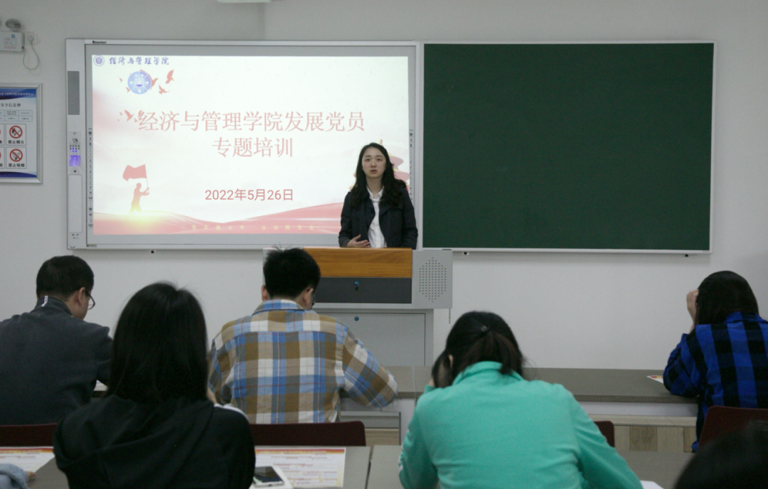 紧接着,学工办主任张莉老师对学生支部书记进行组织发展工作培训,主要从学生党员发展的工作流程、材料的规范性及注意事项等方面进行培训。随后,各学生支部书记对党员发展相关事宜进行了沟通和探讨。