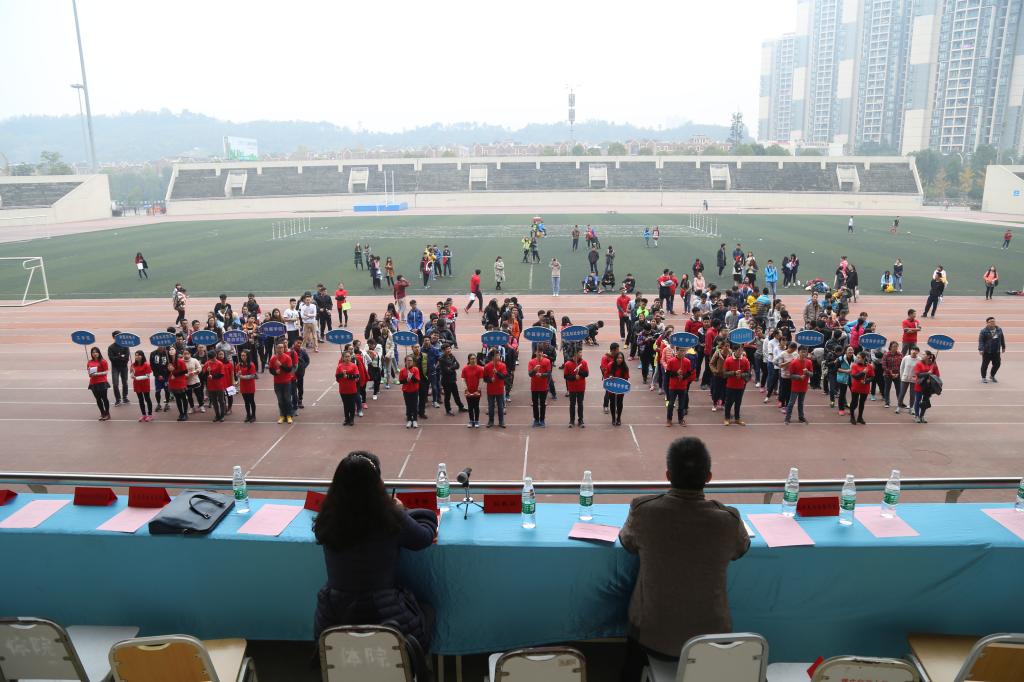 此次活动全校17个学院均派出由男女同学各10名组成的代表队,要求在规定的跑道内进行20x40米的穿梭接力赛,取预赛成绩前8名进入决赛。一点整,各学院代表队先后入场,裁判员代表和运动员代表分别上台发言,校团委副书记高菁励致辞并宣布穿梭接力赛比赛开始,穿梭接力赛正式拉开帷幕。