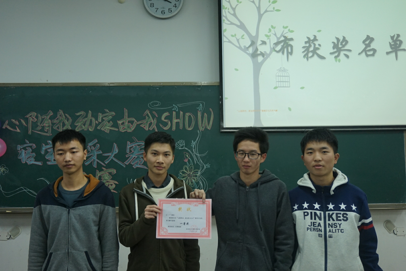 最终,摘下此次比赛桂冠的是唯一一个参赛的男生寝室——清风苑A栋624寝室,雅风苑A栋516寝室和409寝室获得二等奖,雅风苑A栋510寝室、畅风苑A栋2051寝室和畅风苑A栋2034寝室获得三等奖。