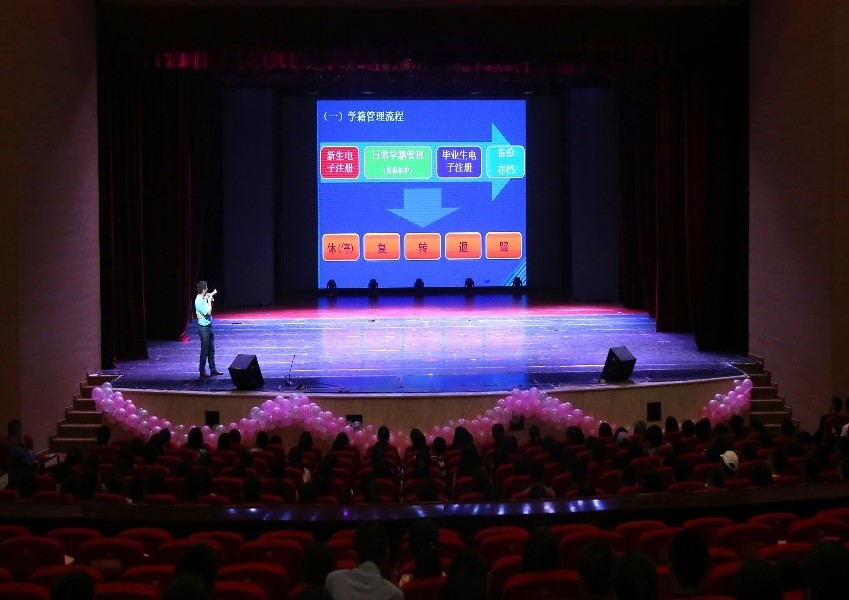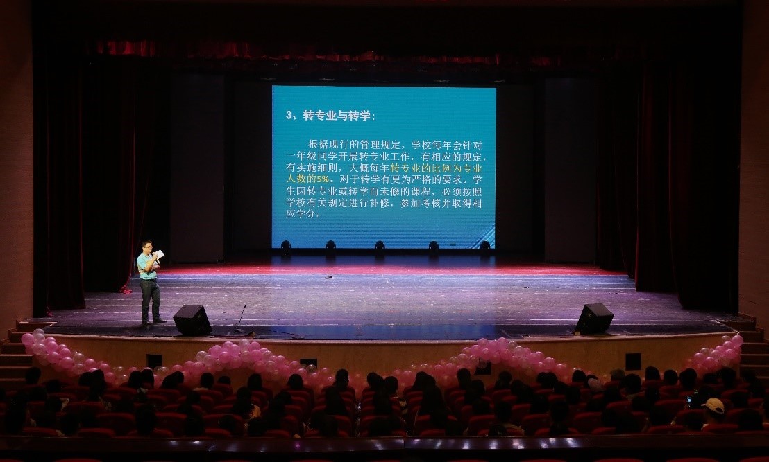 于9月13日下午四点半在校友会堂演出厅开展了针对2018级新生的“入学教育之学习与学籍管理教育讲座”,并由asmr18