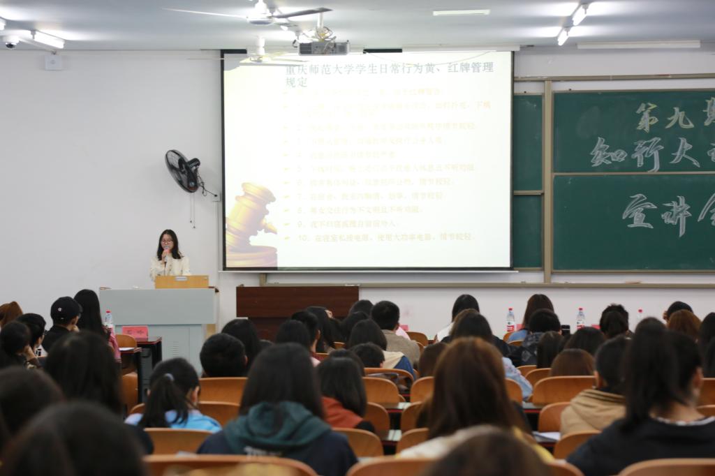 举行宿舍安全条例宣讲会,并在普及学校宿舍管理条例等相关知识和强化学生纪律意识等方面取得明显的成效,加快推动各个班集体向高度纪律性的班级团体过渡。本次宣讲会在辅导员柴风梅老师的介绍下开展,并由asmr18