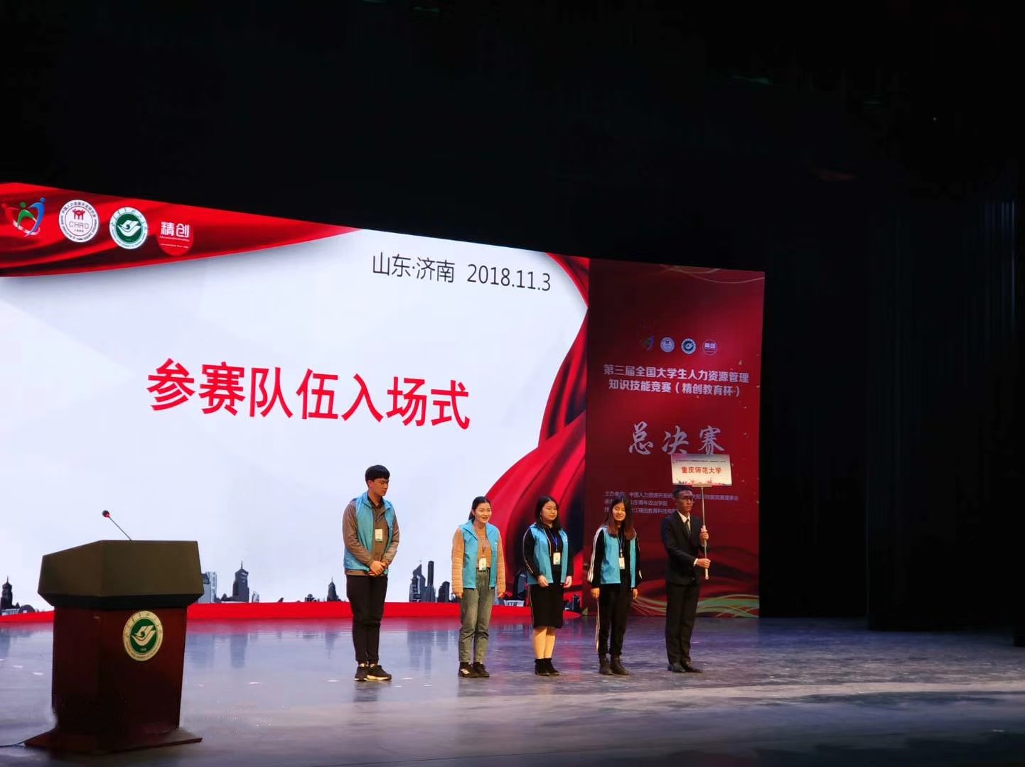 学子沉着应对,展示了良好的精神面貌和较强的知识素养,体现了重师大学子勇于争先、勇于创新、勇于挑战的时代精神。经过激烈的角逐,最终斩获第三届全国大学生人力资源管理知识技能竞赛总决赛“二等奖”和“最佳风采奖”,为学校和学院争得了荣誉!