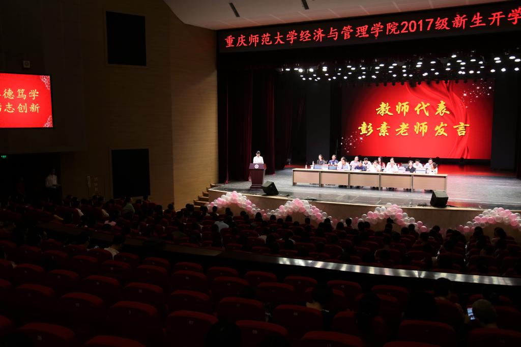 “合理规划时间,莫要本末倒置,教师代表彭素对新生在大学里的学习生活上这样建议到。“使出洪荒之力,尽快适应大学生活,形成自己新的学习思维与方法”是彭老师对新生的忠告。敢想敢拼,才是青春该有的样子。新生代表韦超前发言表示,挫折不可逆,失败也总是如影随行,但是总有一天,我会靠自己实现所有梦想!高年级学生代表刘安琪对新生建议,加入学生会可以施展才华、提升能力,而兴趣小组、社团更是一个可以提升自己专业能力的地方,愿学弟学妹们抓住机会,全面发展自己。心怀梦想,珍惜现在,才是对青春韶华的不辜负。