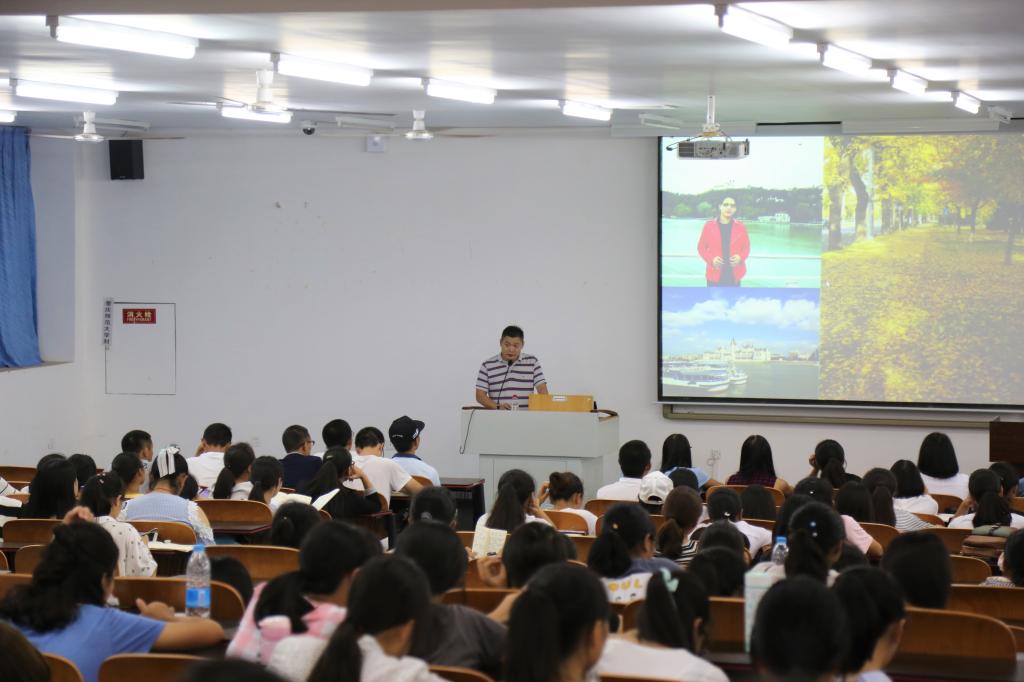 本次讲座针对asmr18 项目合作的鲍尔州立大学与德布勒森大学展开讲解。鲍尔州立大学位于美国印第安纳州中部的曼西市,是美国最著名的公立大学之一,该学校设有7个院系,150多个专业,学校占地面积为1140英亩,在校教职工近千余人,学生两万余人。周教授从该校专业特色、相关费用、就读程序、就读优势等方面进行深入的介绍与讲解,并给同学们展示在校留学生分享回国内的日常生活图片,场面十分亲切。