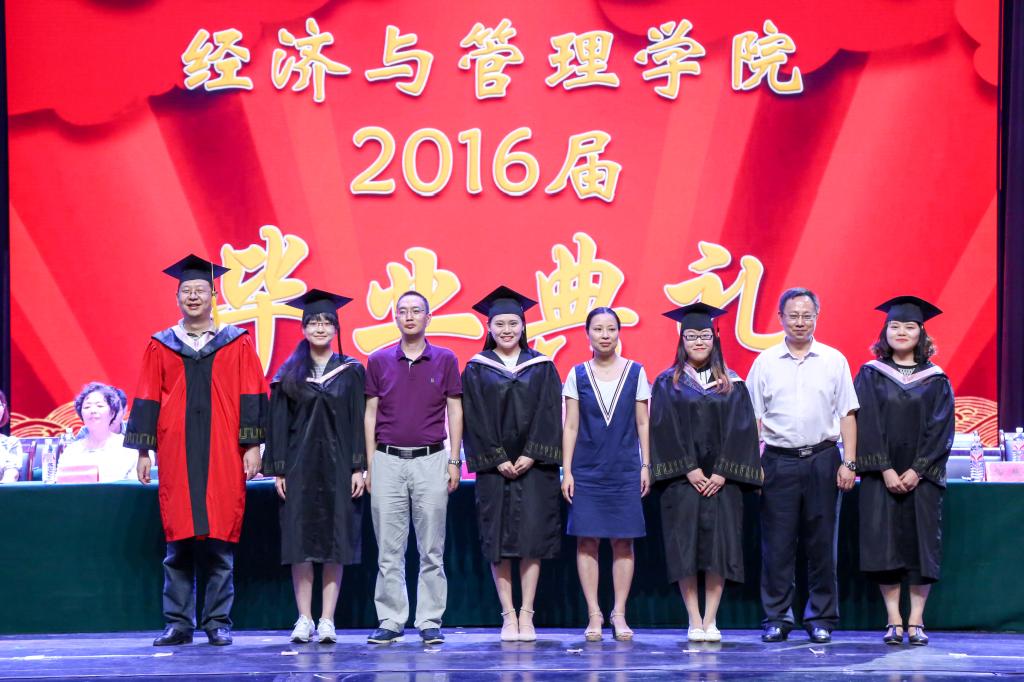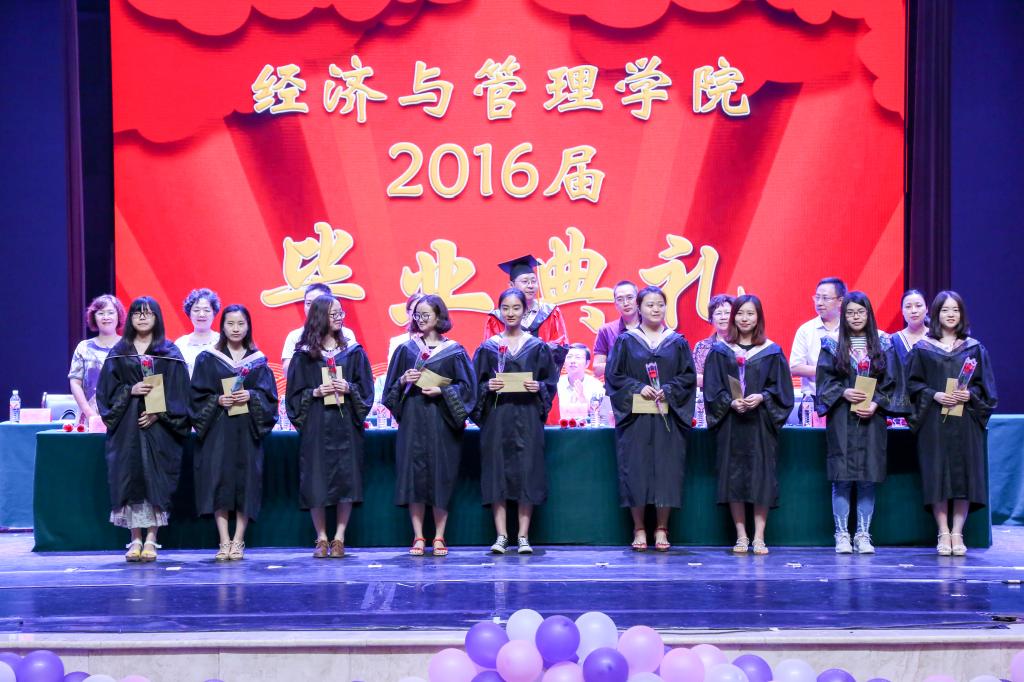 表彰大会结束后,授位仪式隆重举行,asmr18 学位评定分委员会代表对全体2016届毕业生进行授位。教师代表罗富碧老师上台发言,希望2016届毕业生们能够在人生道路上走得更远。党委书记税强告诉同学们经管学院就是学子们的家,是学子们最坚强的后盾,同时也希望同学们能够常“回家”看看,与母校共同成长。毕业生也为学院送上精心准备的礼物——金牛鼎足,“金牛挥尾,前程似锦”表达了他们对学院的深切祝福。