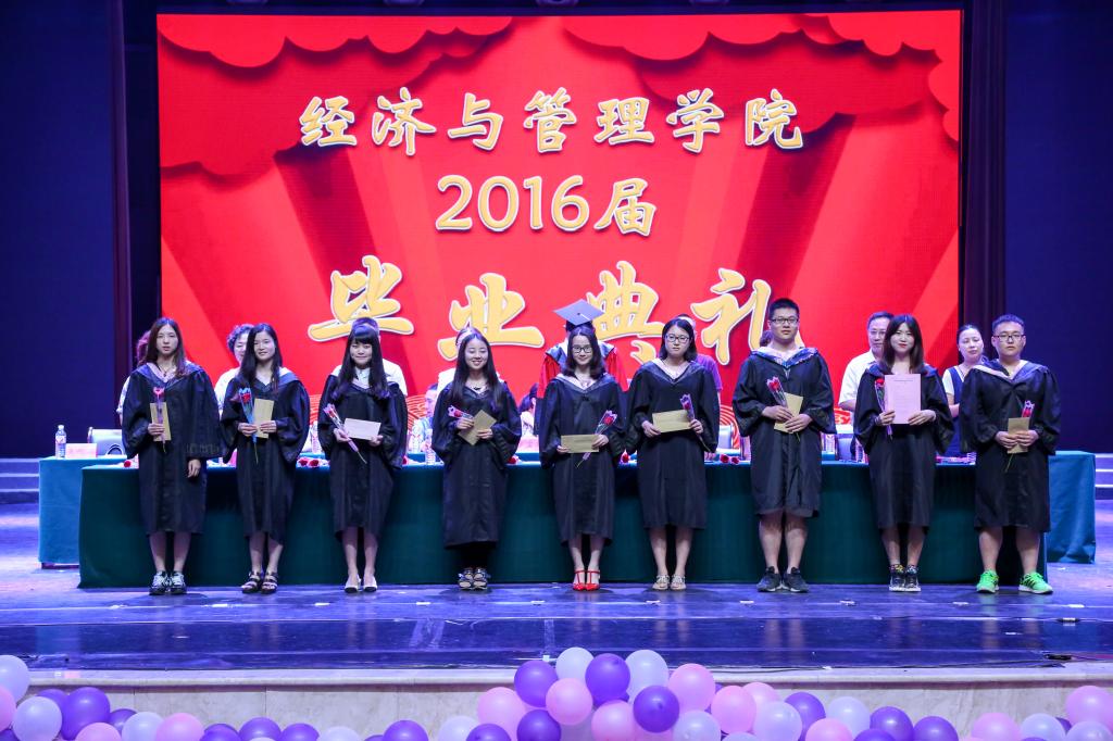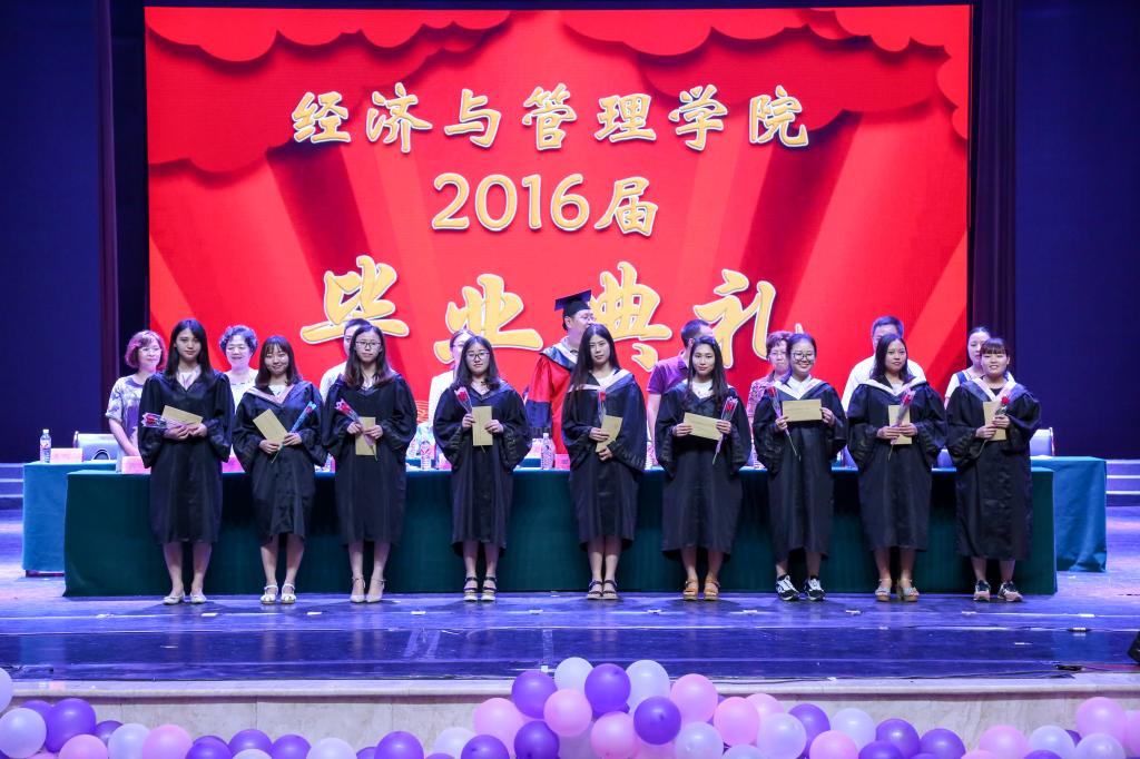 伴随着庄严的国歌,毕业典礼缓缓拉开了帷幕,院长田盈向毕业生们作临别赠言,鼓励毕业生们要对未来坚定希望,要坚守大学精神,开启人生新篇章。在陈道平副院长宣读了2016届优秀优良毕业生以及升学深造的学生名单并为优秀代表颁奖后,优秀毕业生代表康梦楠发言,一首《不说再见》道出她对同学们的依依不舍及对母校的深切怀恋。临近离别,道声祝福,说句珍重。