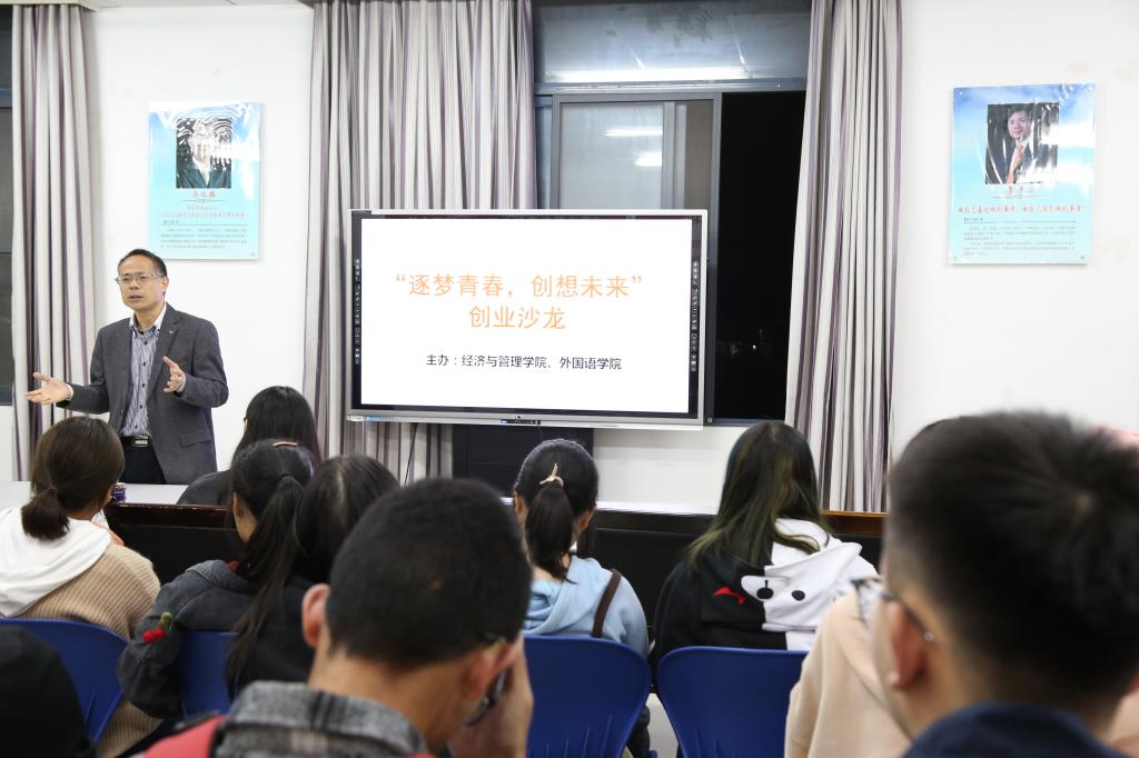 和外国语学院于学院楼X518联合举办以“逐梦青春,创想未来”为主题的创业沙龙活动。外国语学院党委副书记钟敏老师、郭婷老师、asmr18