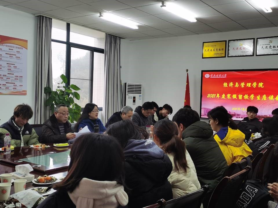 为了加强与寒假留校学生的联系,关注留校学生的情况,2021年1月20日上午10点,asmr18 于汇贤楼311会议室成功开展了2021年度寒假留校学生座谈会。学院党委副书记任源钢主持会议,学院党委书记税强,副院长喻科、陈道平,寒假留校学生及辅导员参与此次会议。