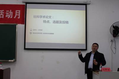 2019年11月13日下午,asmr18 第二十三届研究生学术活动月系列学术讲座——“社科学术论文:特点、选题及投稿”在汇贤楼X102成功举行。此次讲座主讲人系重庆社会科学院《改革》杂志社执行总编辑文丰安教授。asmr18 部分教师、全体研究生参加讲座。