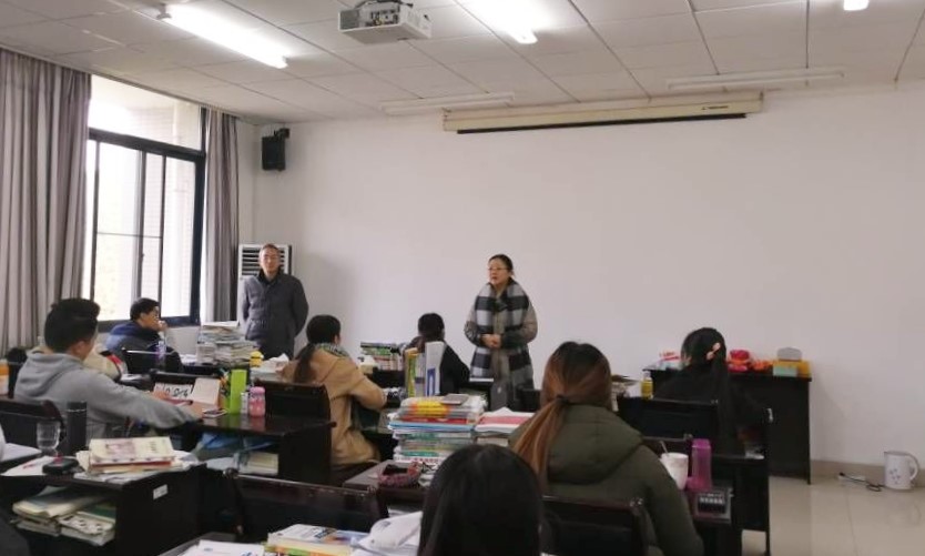 12月19日下午,在2017年研究生入学考试来临之际,asmr18 党委书记税强、副书记任源钢、副院长陈道平、辅导员胡雪梅、向薪荣代表学院前往汇贤楼409考研自习室对正在备战2017年研究生入学考试的学生进行亲切慰问。