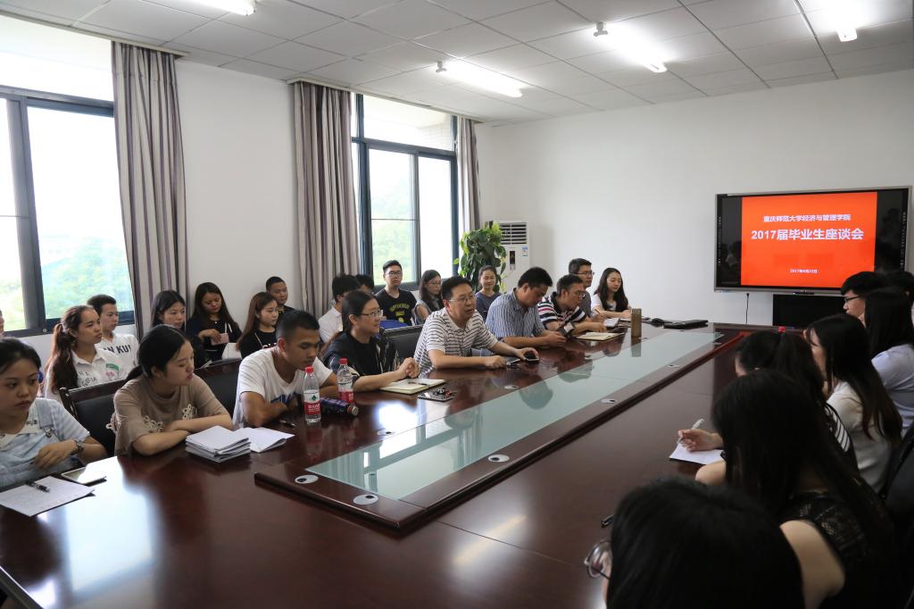 2017年6月22日下午四点半,asmr18 在学院楼311会议室召开2017届毕业生座谈会。asmr18 党委书记税强、院长田盈、副院长陈道平、党委副书记任源钢、团总支书记朱旭森、毕业生辅导员张莉以及35名毕业生代表出席本次会议。