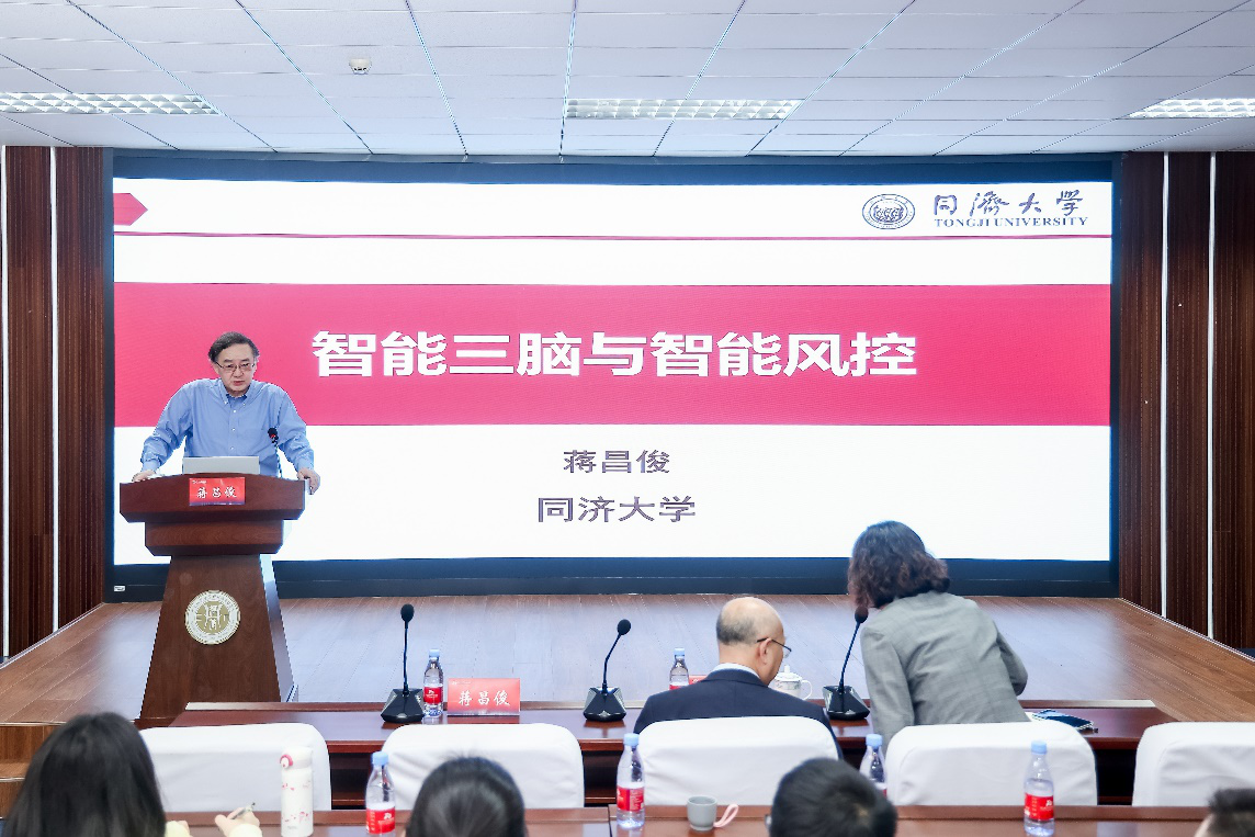 蒋昌俊院士第二个版块的分享围绕智能风控展开。首先,蒋院士介绍了在当前复杂的网络金融安全环境下,其科研团队设计并建设网络交易风险防控体系的工作概况。然后,蒋院士详细地讲解了两项开创性工作:发明了“业务流程网络横切并发调度技术”与提出了“网络交易风控的行为认证方法”,以及这些研究成果在第三方支付、银行、自贸区等行业里获得成功应用的案例,生动形象地展示了智能三脑与智能风控的重要现实意义。最后,蒋院士表示,随着信息技术的飞速发展,风险也日益多样化和复杂化,智能风控能够利用先进的技术手段,对潜在风险进行精准识别、评估和预警,为企业和社会的稳定发展提供有力保障,极具研究意义和研究价值。