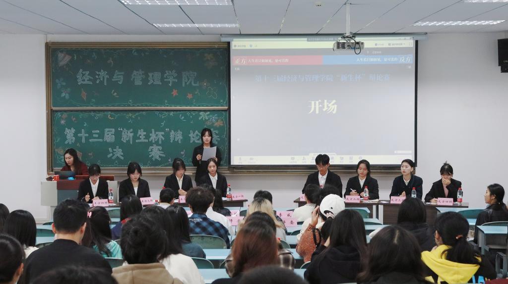 第十三届“新生杯”辩论赛决赛于11月7日14时在求是楼421教室顺利举行。学院团委书记兼学工办主任张莉、辅导员李威老师、刘炜婳老师、以及来自校辩论队的队长等受邀担任评委和同学们齐聚一堂,共享辩论魅力。
