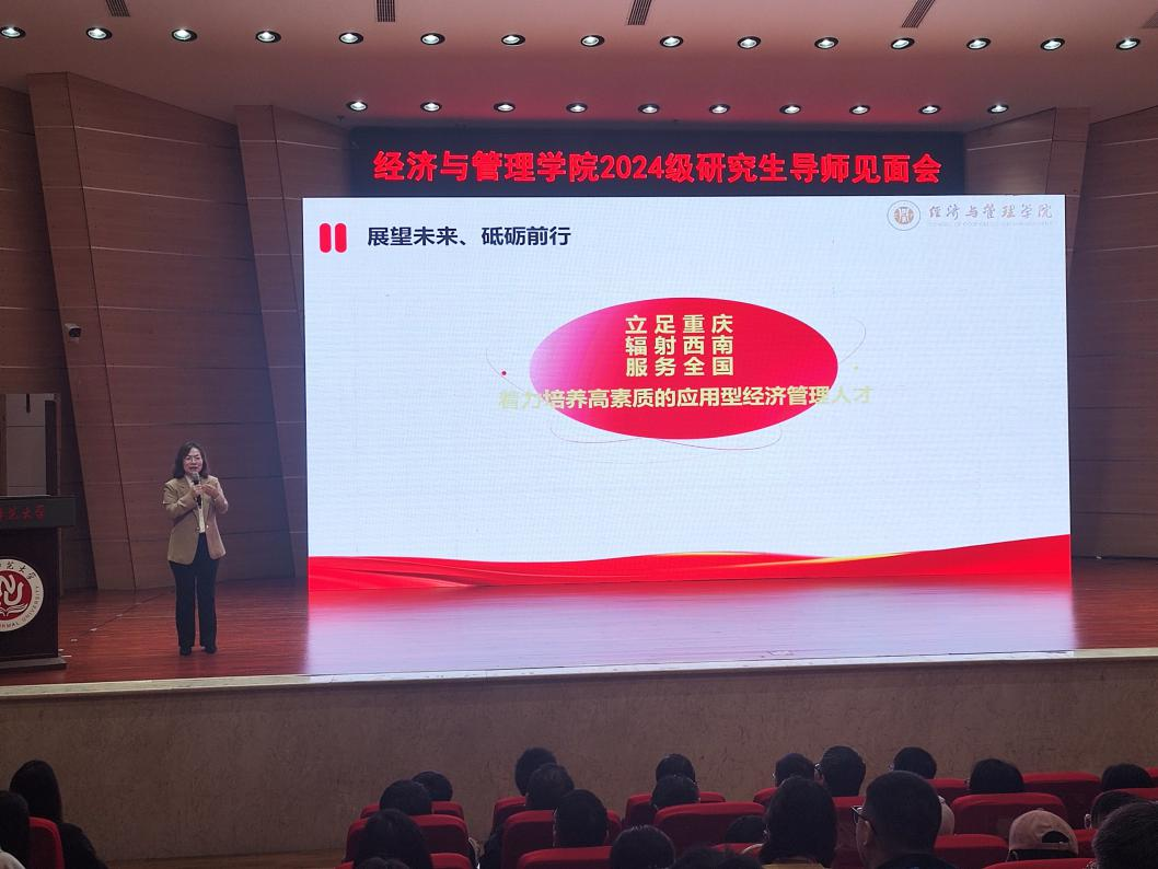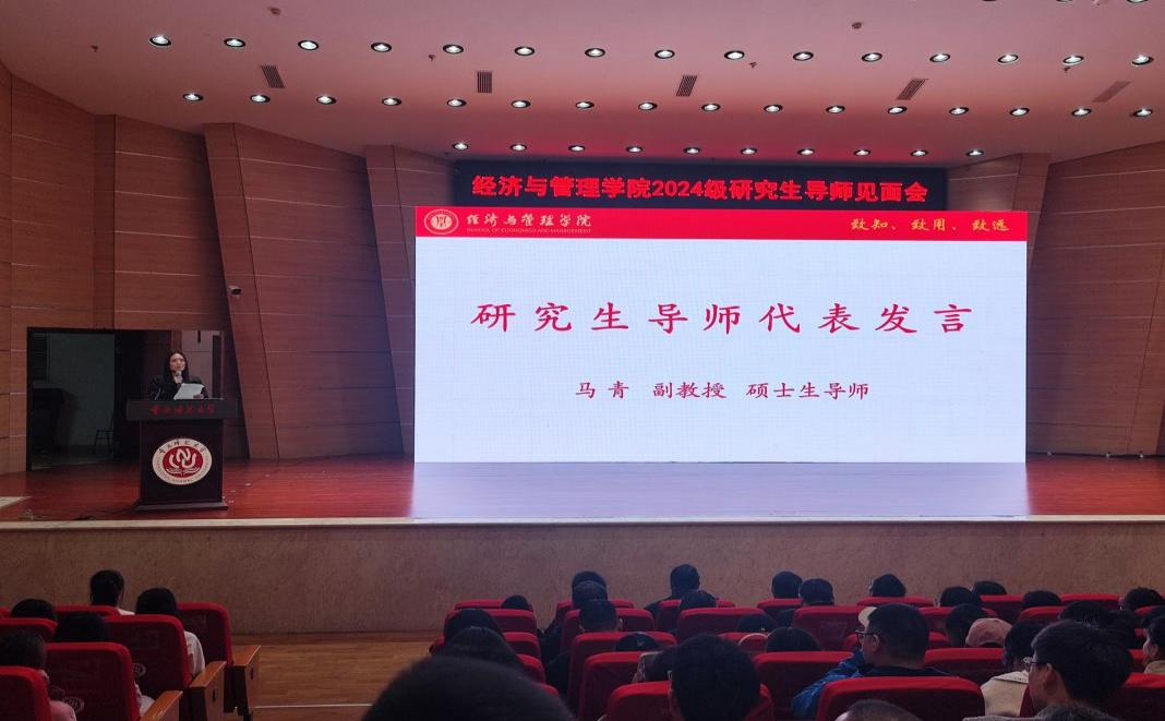 2024级研究生导师见面会在校友会堂音乐厅举行。学院党政领导、研究生导师、研究生办公室老师、2024级全体硕士研究生参加见面会,副院长陈宇科担任主持。