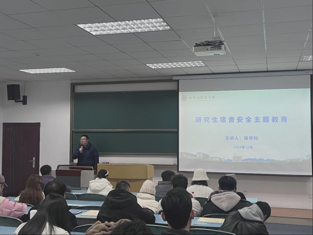 12月24日下午,asmr18 在求是楼213教室举办“研究生宿舍安全”主题活动。活动由副院长陈宇科主持,辅导员向薪蓉、王雪薇以及学院各年级寝室长、班委参加此次讲座。