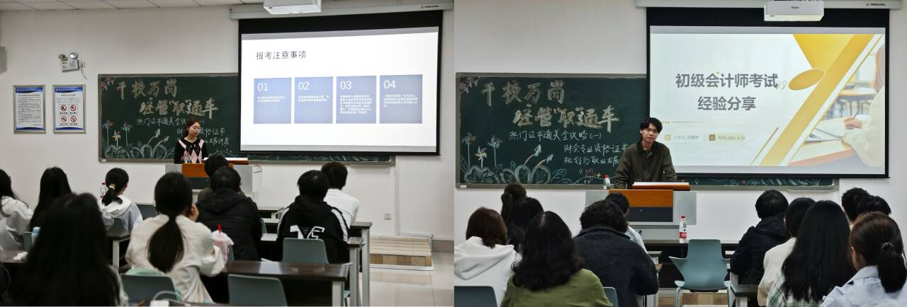在求是楼215开展热门证书通关全攻略(一)——财会专业资格证书规划与职业发展讲座及经验分享。本次活动由财务金融系讲师毛怡欣博士主讲,并邀请两位考取初级会计师证的同学分享周静雯、邱晨轩备考经验。