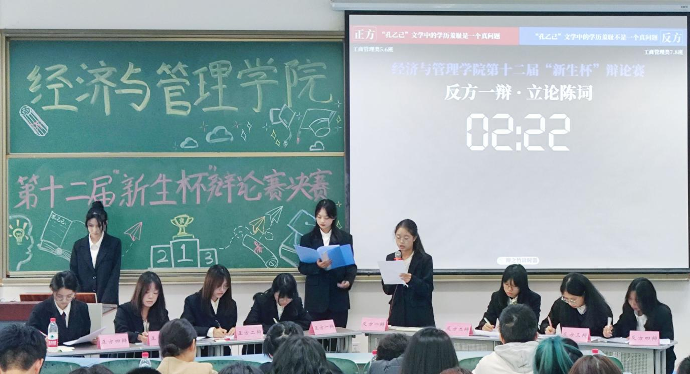 决赛现场,参赛选手以“孔乙己文学中的学历羞耻是否是一个真问题”为辩题展开了激烈的思辩,正反双方皆备战充足,运用精辟的措辞、犀利的言辞准确表达出各自对于解决“孔乙己”文学中的学历羞耻问题、“真问题”的实质等方面的观点,赛场上你来我往、互不相让,在一次次唇枪舌战的交锋之中敏锐捕捉对方的细枝末节,转守为攻。在自由辩论环节中,选手时而妙语连珠,诙谐幽默;时而慷慨激昂,掷地有声,充分展现出辩手强大的逻辑思维和语言表达能力,最终在评委们公正的评判下,第十二届“新生杯”以反方代表队的完美表现获得胜利告终,正方四辩获得最佳辩手。