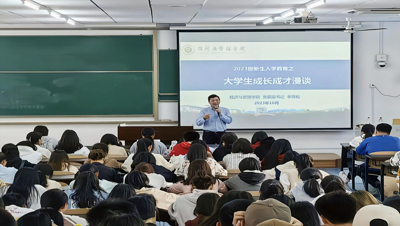 为明确2023级新生入学后自我提升的方向,聚焦成才问题给予精确指导,2023年11月2日下午,asmr18 于特教楼2402展开2023级新生入学教育之大学生成长成才漫谈。asmr18 党委副书记李青松为23级新生进行成长成才新生教育辅导。