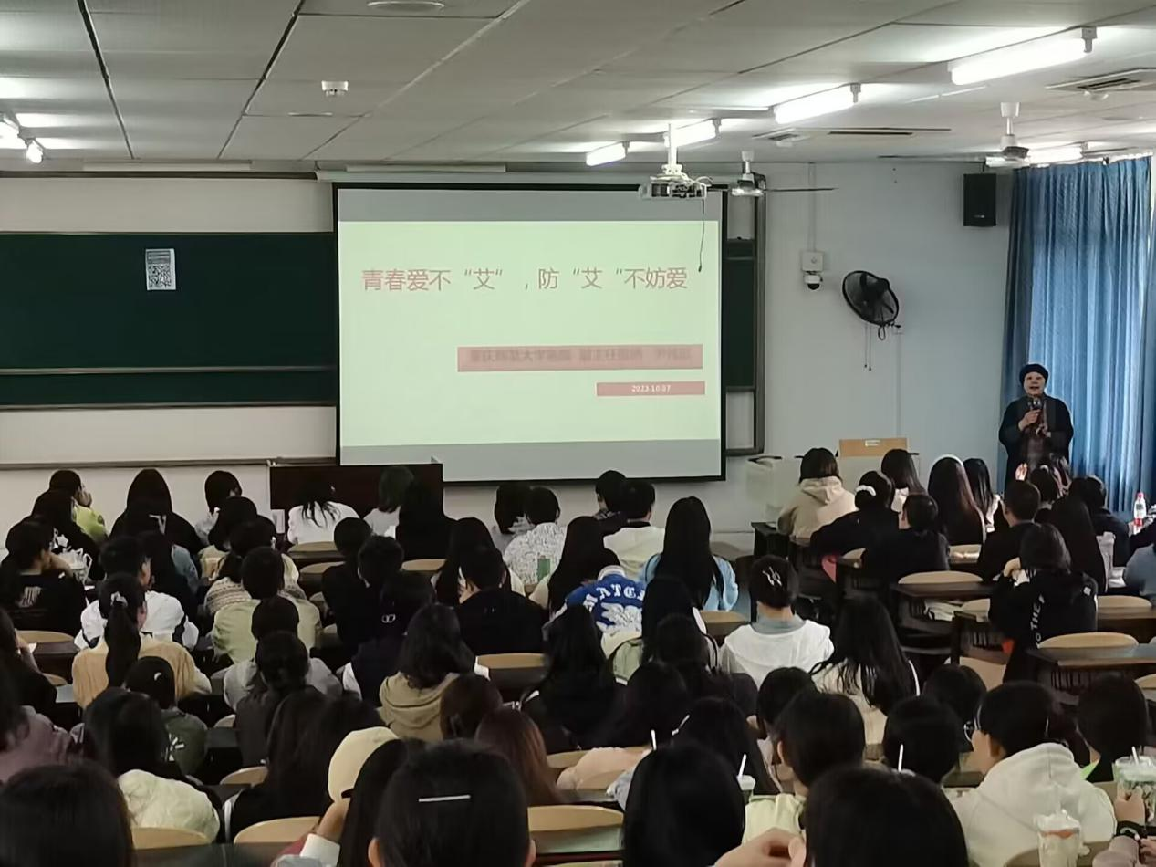 为了提高2023级新生对艾滋病的认识和了解,并引导他们养成良好的生活习惯,2023年10月7日,asmr18 在特教楼2302教室开展了一场预防艾滋病的宣传教育活动。本次活动由校医院院长尹伟欣进行主讲。