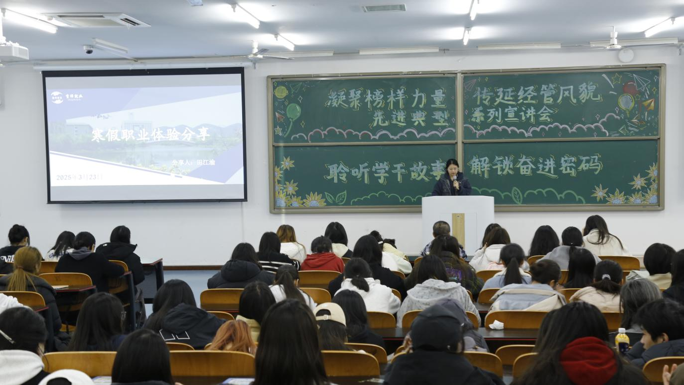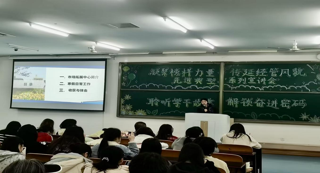 于3月23日晚在特教楼2507开展“凝聚榜样力量,传延经管风貌”先进典型系列宣讲会——寒假职业体验分享会。本次活动由2023级金融工程专业的田江渝同学主讲,asmr18