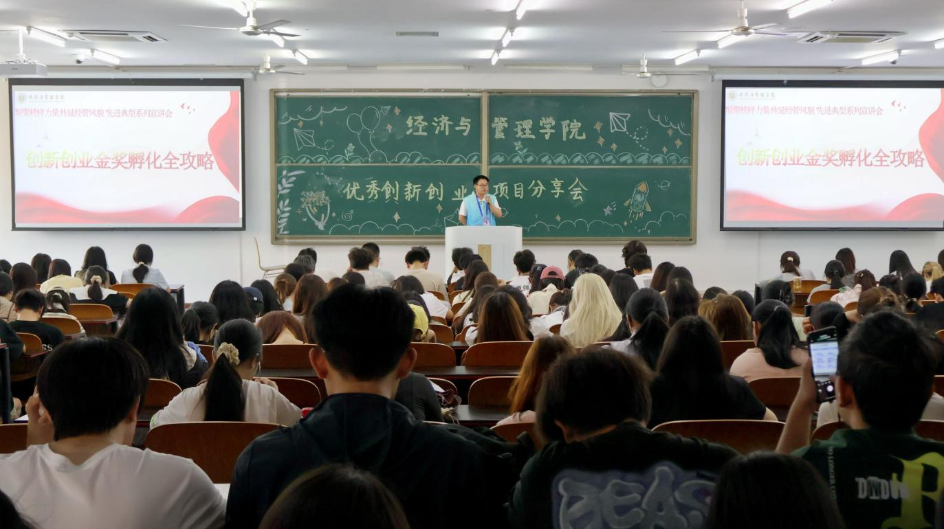 于励志楼T2507举办“凝聚榜样力量,传延经管风貌”先进典型系列宣讲会——创新创业金奖孵化全攻略。本次活动由院团委书记张莉主持,并邀请创新创业学院中国国际大学生创新大赛宣讲团成员周航、陈午阳与同学们分享创新创业经验与感悟,asmr18