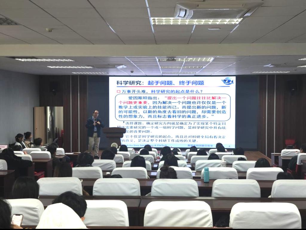 于求是楼517报告厅成功举办“博望经管·名家讲坛”专题讲座。本次讲座邀请到四川大学特聘教授、博士生导师余乐安担任主讲人,主题为“科学研究中的科学问题与研究方向选题”,学院副院长陈宇科主持,2023级、2024级全体学硕参与此次讲座。