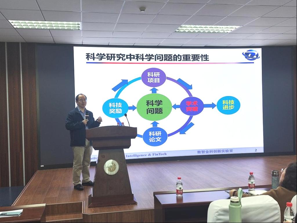 讲座伊始,余乐安教授以罗纳德·科斯的学术历程为切入点,阐明科学问题在科研活动中的元动力地位。他指出,科研活动本质是通过“问题识别-理论构建-实证检验”的循环迭代推进知识体系演进,科学问题的核心在于其需同时满足逻辑自洽性与实证支撑性。借助波普尔证伪主义哲学,余教授强调科学结论的有效性边界在于其前提假设的适用范围,任何理论突破都需经历“猜想-反驳-修正”的证伪循环。
