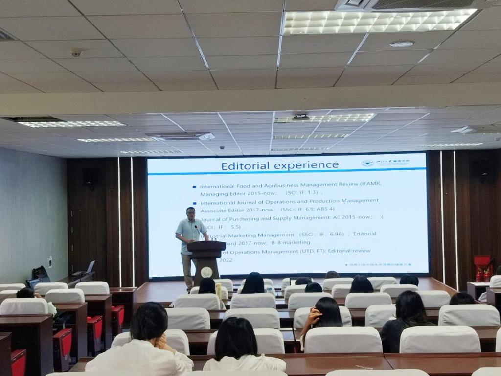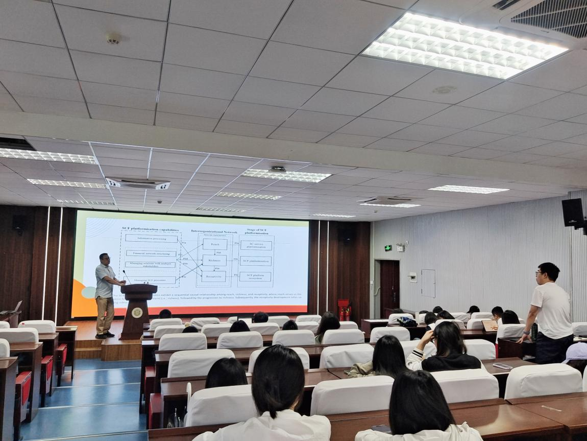 2025年5月6日上午,asmr18 于求是楼517报告厅举办学术讲座,主题为“从平台化到生态化:第三方供应链金融平台如何打造生态系统?——跨组织网络视角”。英国约克大学商业与社会学院供应链管理讲座(全职)教授、可持续性与韧性主题总监贾甫教授应邀主讲,学院副院长陈宇科主持,金融专硕教师及2024级全体学硕、金融专硕学生共同参与。