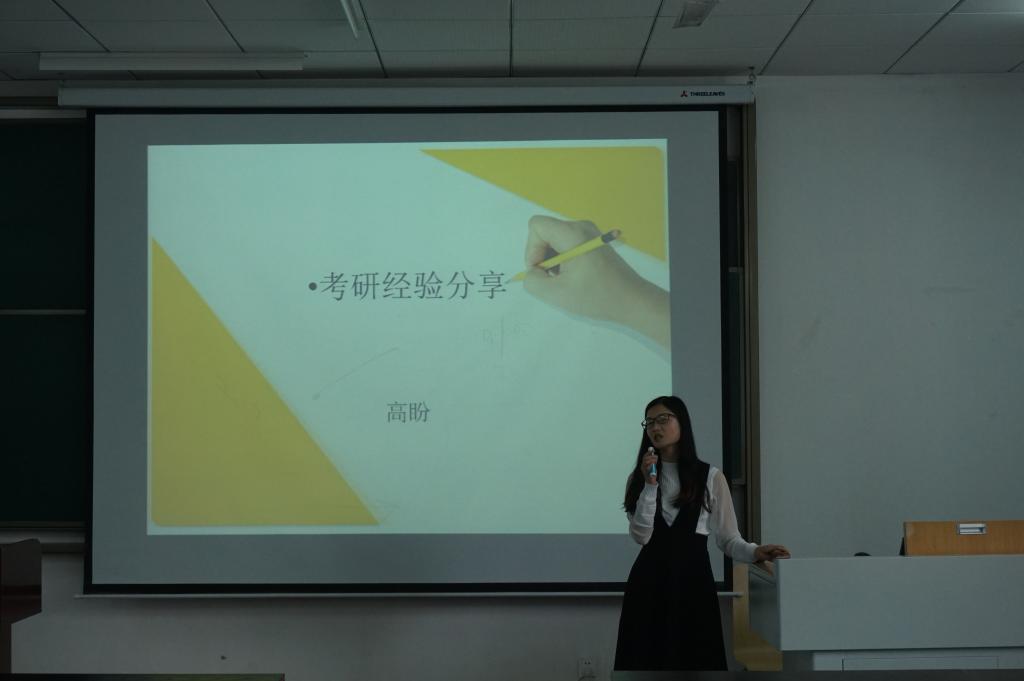 学生康梦楠、高盼、李诗昀分别结合自己的实际经历做出分享。她们指出考研应具有良好的心态,别轻言放弃;要养成良好的学习习惯,制定好每天的计划表,提高自身的学习效率;选择专业和学校时要慎重,要结合自己的实际情况出发,切勿好高骛远;要真正意义上的去学习,利用好考研资料,认真复习。同时,她们也推荐到一些很不错的学习软件、复习资料以及答题方法,给准备考研的学子们起到一个良好的带头作用。