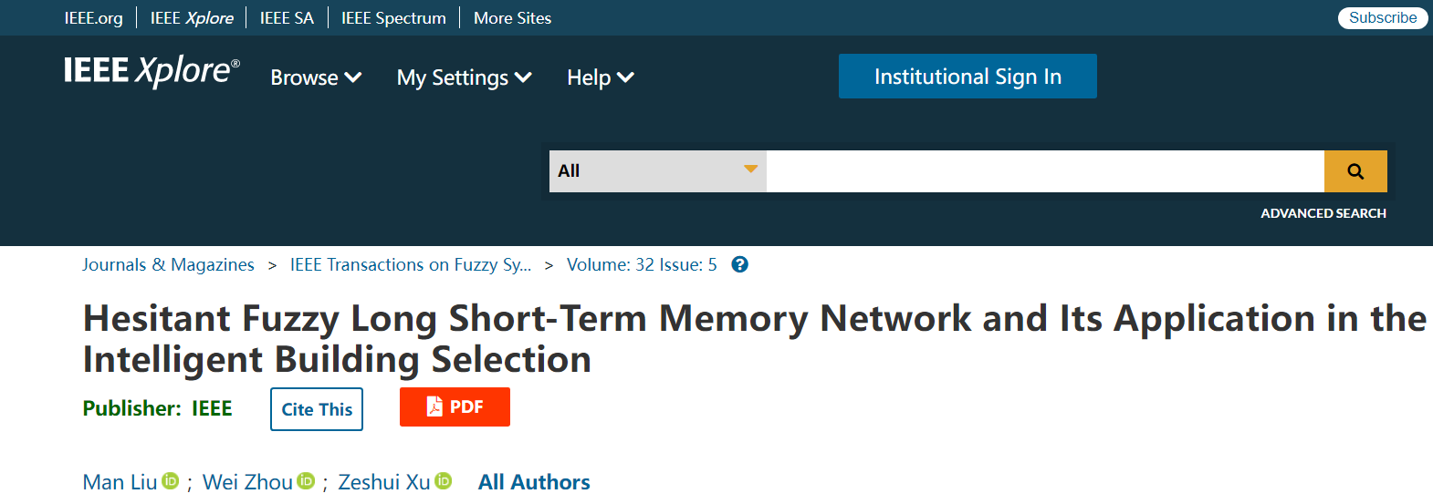 (1)发表于《IEEE Transactions on Fuzzy Systems》(SCI,中科院1区Top, IF: 11.9)的论文“Hesitant fuzzy long short-term memory network and its application in the intelligent building selection”,其中,柳曼为第一作者,学院为第一单位;