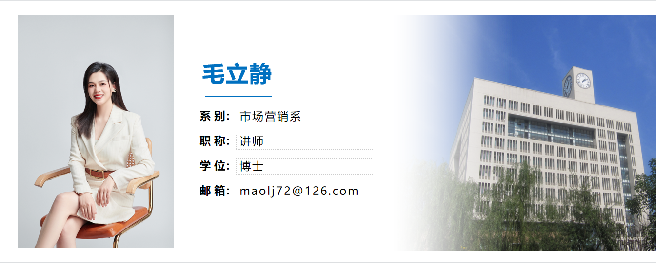 毛立静(1992-),女,河北唐山人,管理学博士。主要研究方向为消费者行为学;主讲消费者行为学、线性代数等课程。